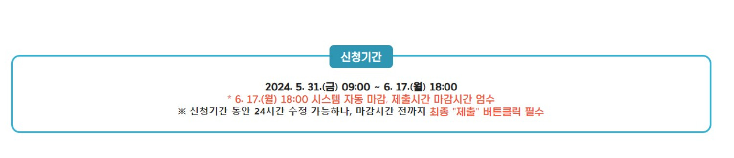 신청기간은 2024년 5월 31일 금요일부터 6월 17일 월요일까지입니다.