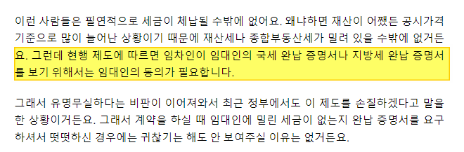 이런 문제 때문에 법을 개정하여, 2023년 4월부터는 전월세 계약 시 집주인의 세금 체납 여부를 확인할 수 있도록 국세완납증명서를 제출하도록 하고 있습니다.