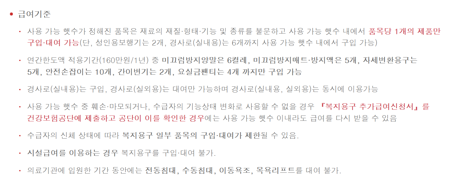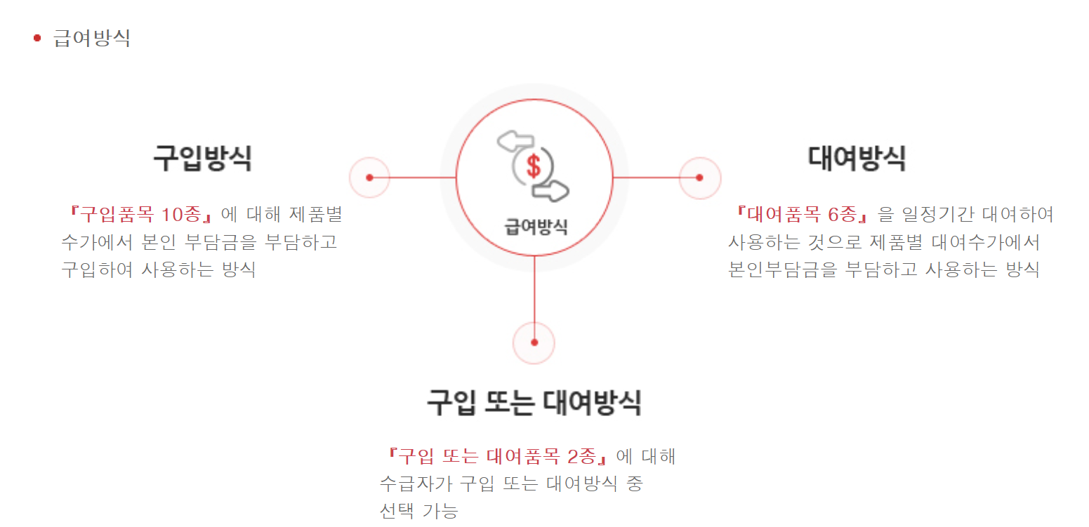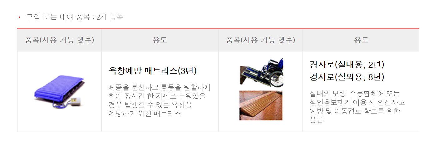 욕창용 매트리스나 경사로는 구입 또는 대여방식을 선택할 수 있습니다.